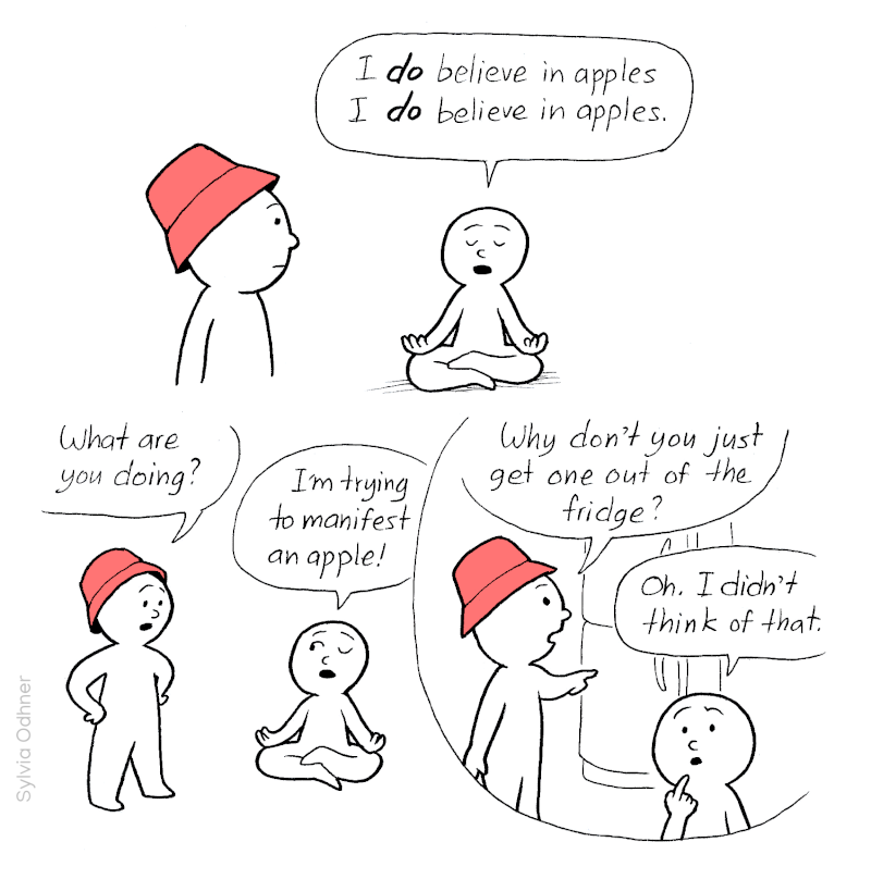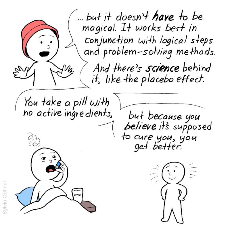 ...but it doesn't have to be magical. It works best in conjunction with logical steps and problem-solving methods. And there's science behind it, like the placebo effect. You take a pill with no active ingredients, but because you believe it's supposed to cure you, you get better.