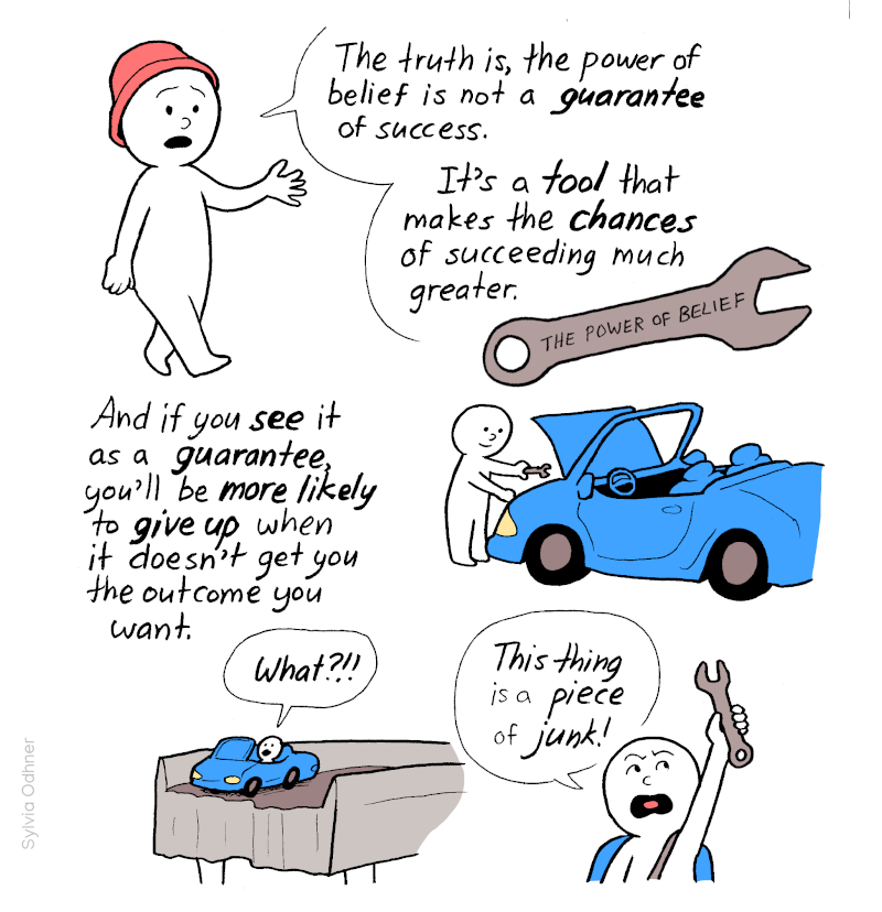 The truth is, the power of belief is not a guarantee of success. It's a TOOL that makes the chances of succeeding much greater. And if you see it as a guarantee, you'll be more likely to give up when it doesn’t get you the outcome you want.