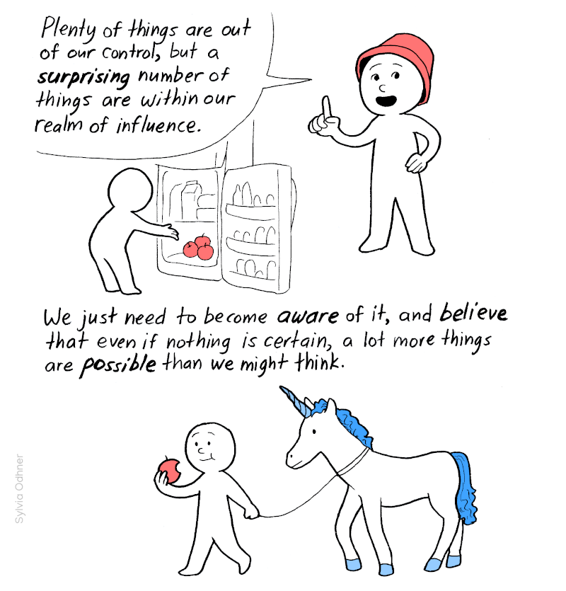 Plenty of things are out of our control, but a surprising number of things are within our realm of influence. We just need to become aware of it, and believe that even if nothing is certain, a lot more things are possible than we might think.