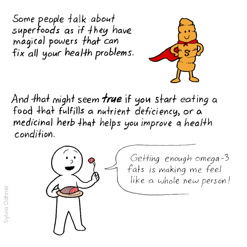 Some people talk about superfoods as if they have magical powers that can fix all your health problems.