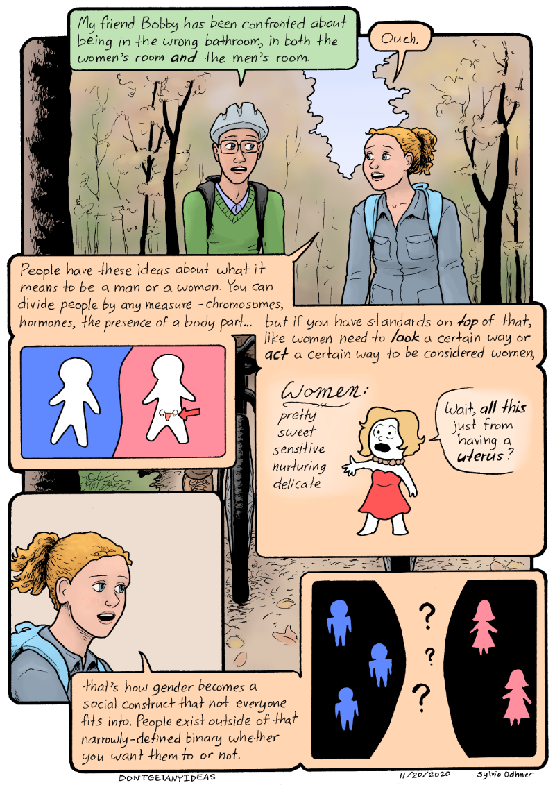 Lily: that's how gender becomes a social construct that not everyone fits into. People exist outside of that narrowly-defined binary whether you want them to or not.