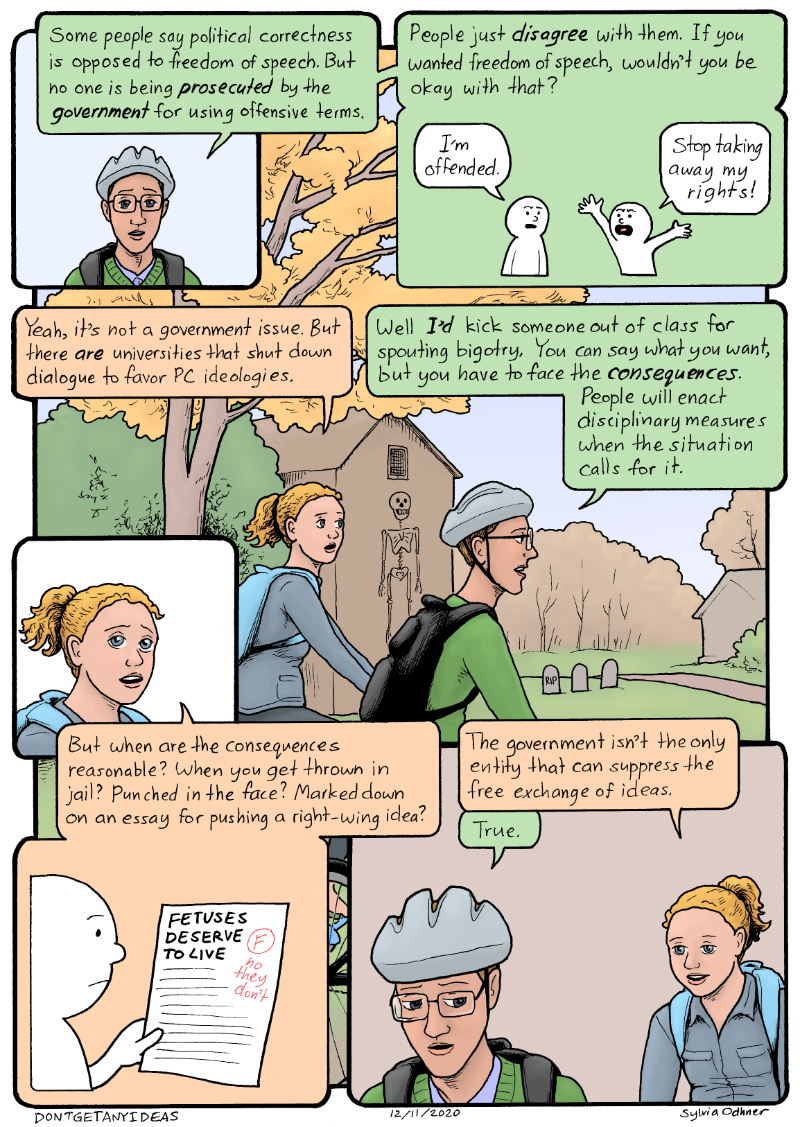 Lily: Yeah, it's not a government issue. But there ARE universities that shut down dialogue to favor PC ideologies.