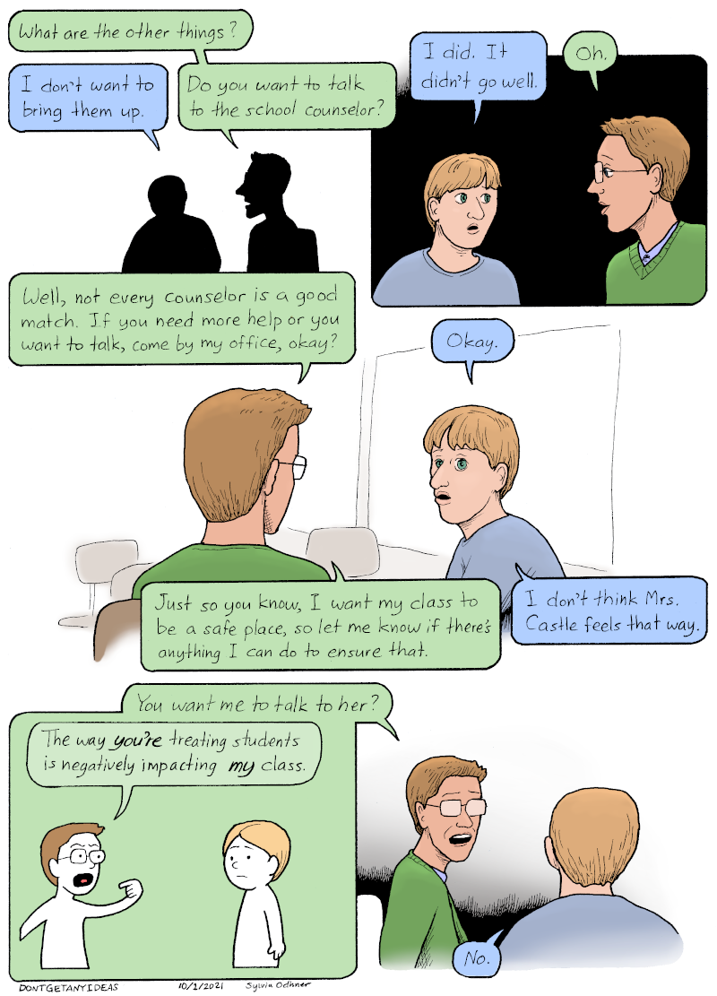 Simon: Just so you know, I want my class to be a safe place, so tell me if there's anything I can do to ensure that.