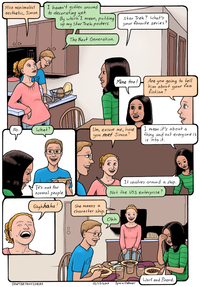 Sasha: I mean it's about a thing and not everyone is into it. It revolves around a ship. Simon: Not the USS Enterprise?