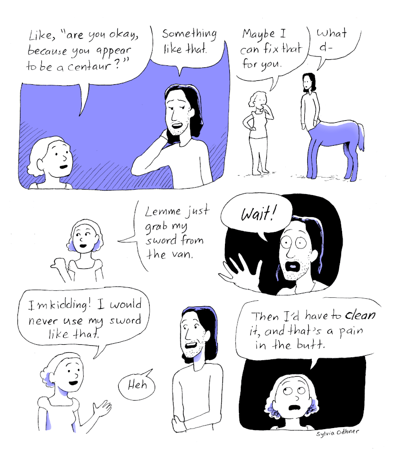 Olive: Like, "are you okay, because you appear to be a centaur?"