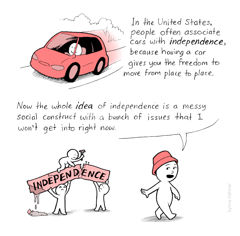In the United States, people often associate cars with independence, because having a car gives you the freedom to move from place to place. Now the whole idea of independence is a messy social contruct with a bunch of issues that I won’t get into right now.