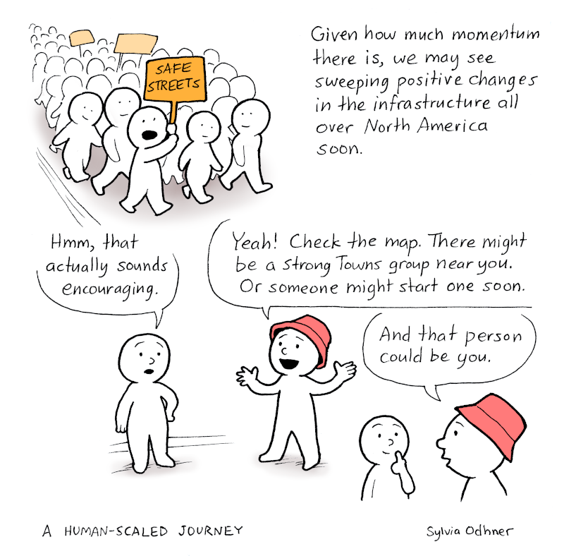 Me: Yeah! Check the map. There might be a Strong Towns group near you. Or someone might start one soon. And that person could be you.
