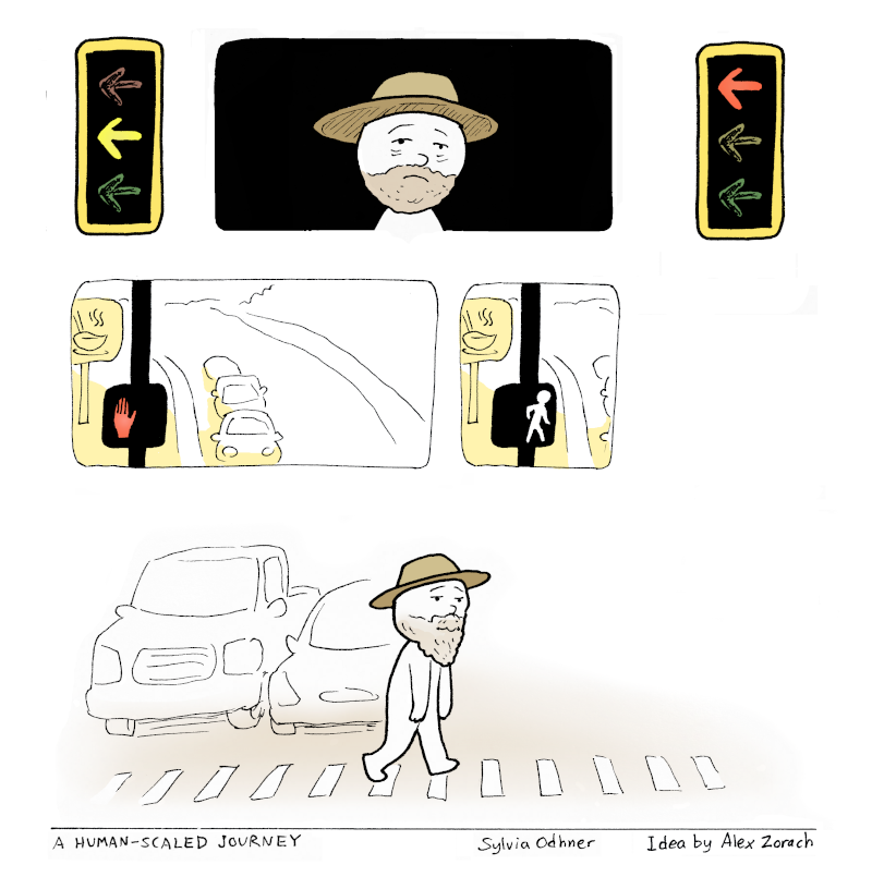 Does crossing an intersection on foot have to take this long? I think we can do better. My friend Alex Zorach helped me come up with the idea for this one.